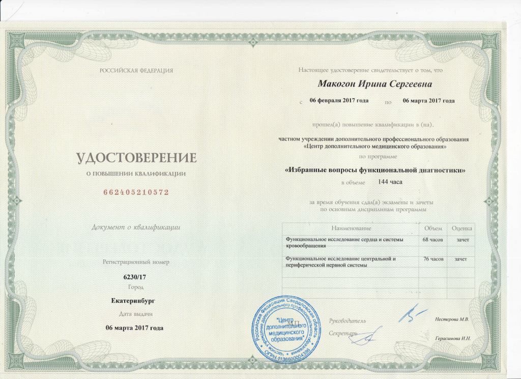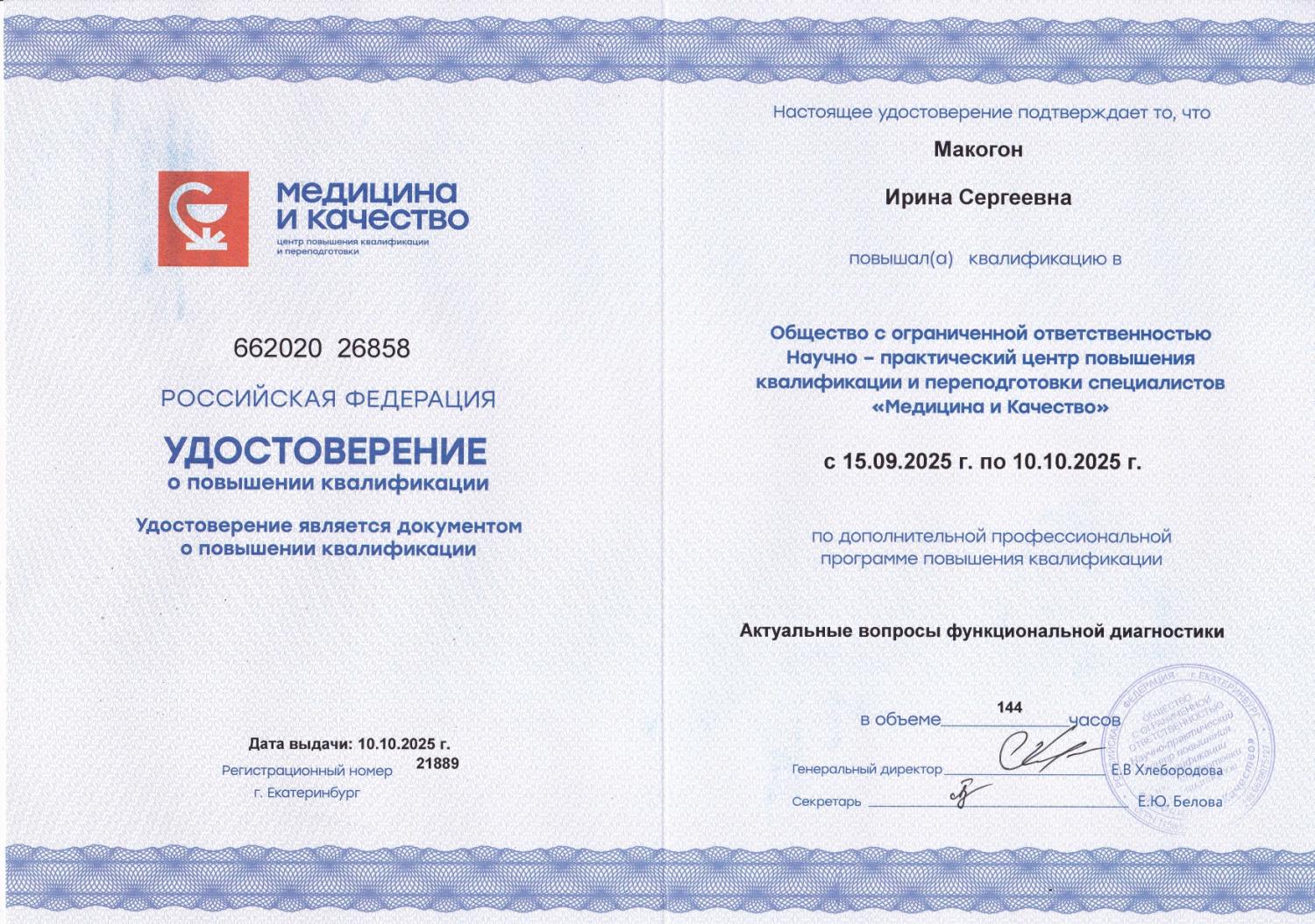 Повышение квалификации Макогон И.С. функциональная диагностика 2025