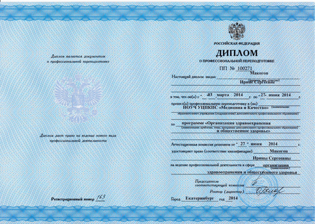 Диплом о профессиональной переподготовке УЗИ Макогон И.С.