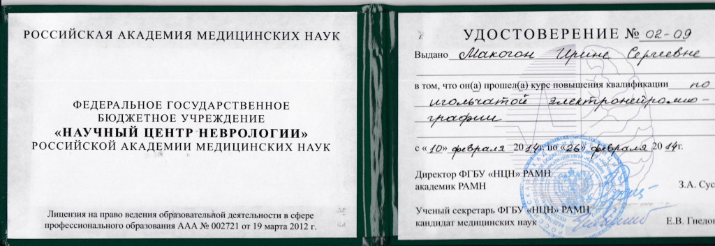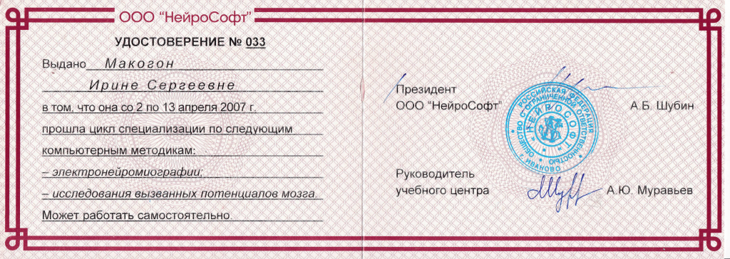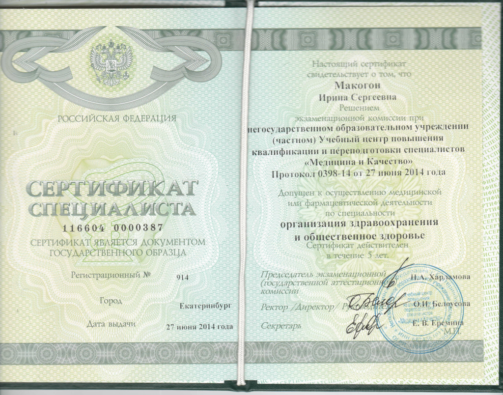 Сертификат специалиста Макогон И.С.