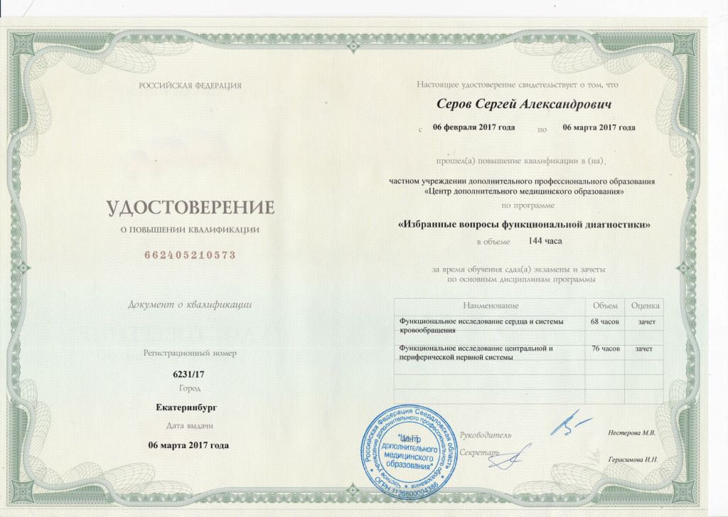 Удостоверение о повышении квалификации Серова С.А.