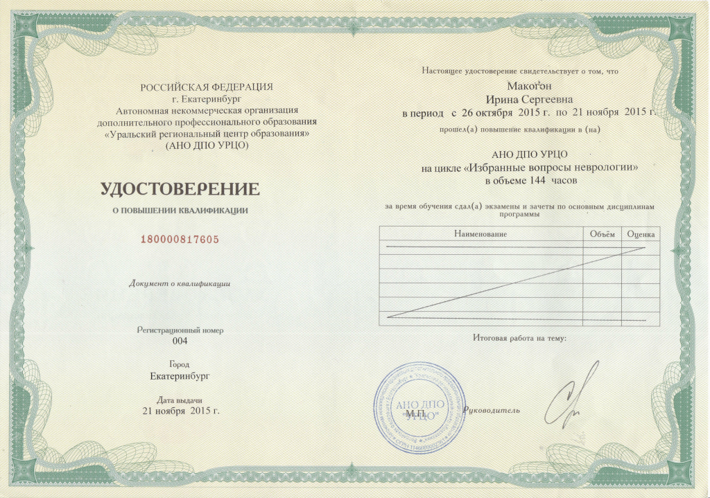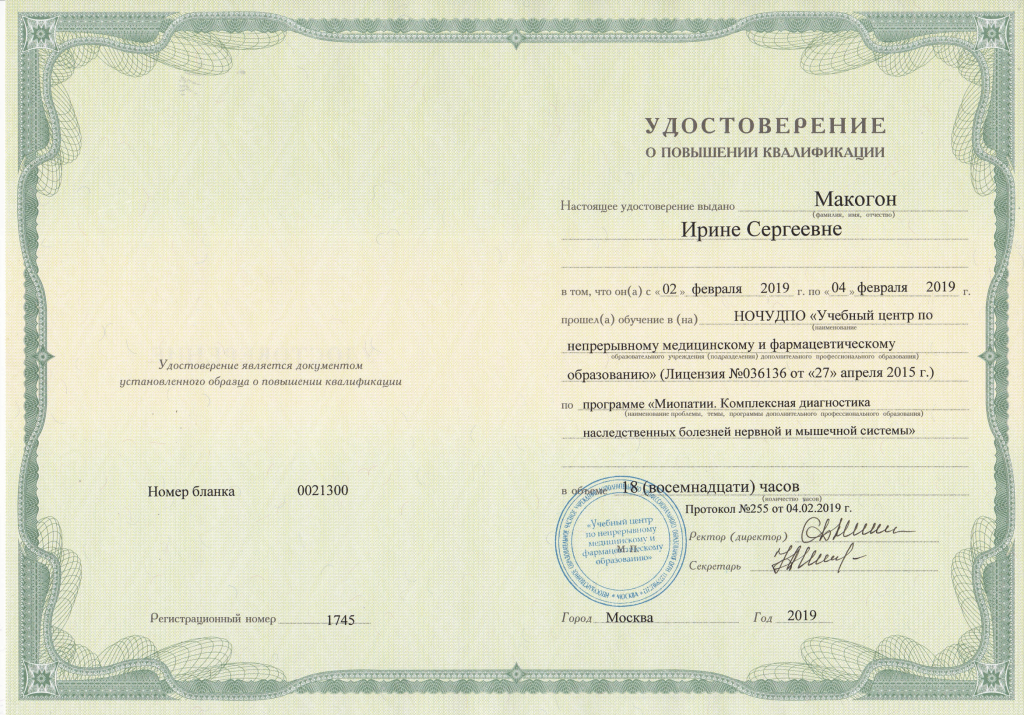 Удостоверение о повышении квалификации Макогон И.С.