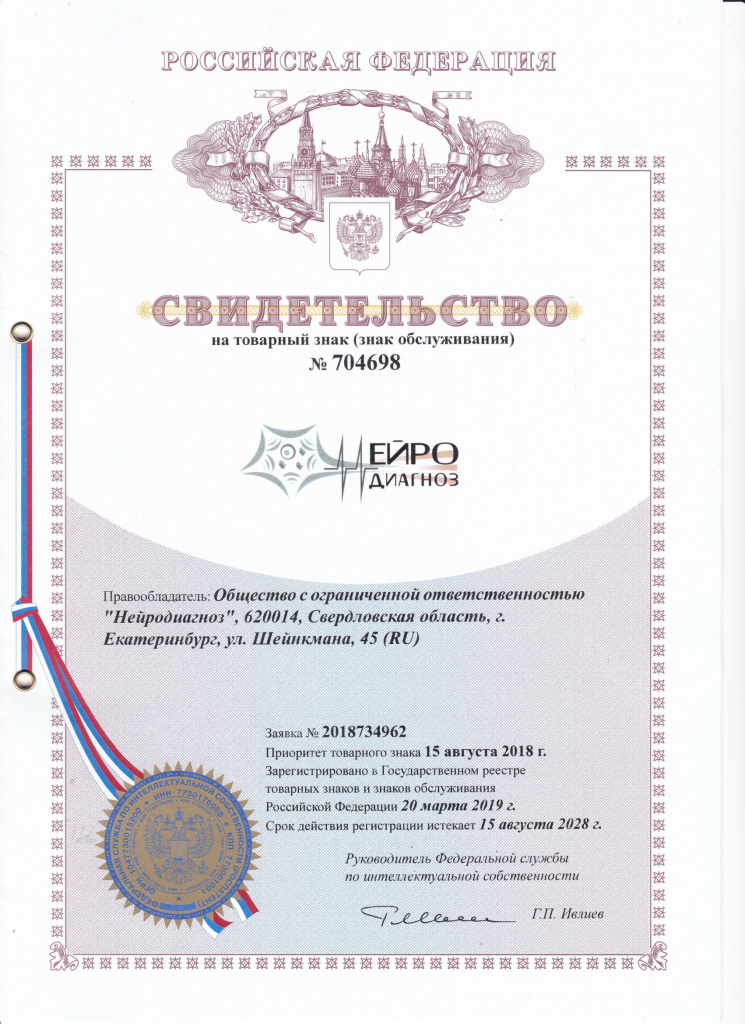 Свидетельство на товарный знак (знак обслуживания) "Нейродиагноз"